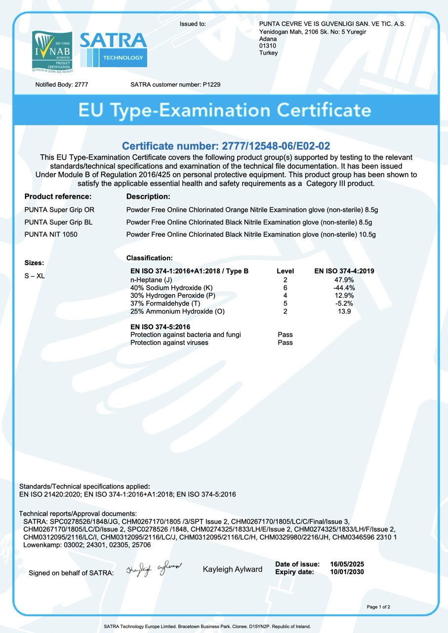 %100 Nitril Hammaddeden üretilmiş, pudrasız ve protein içermeyen eldiven. Parmak uçları pütürlüdür, kaymayı engeller.
